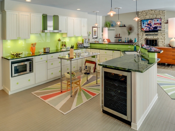 Un covor de lână împletit la război este potrivit pentru un design modern și clasic. Acestea sunt extrem de durabile și rezistente la murdărie, precum și ușor de întreținut. Un covor de covoraș mozaic este potrivit pentru a oferi o atmosferă mai deschisă bucătăriei și poate adăuga o notă de creativitate și originalitate. Covorul antilope oferă un plus de strălucire și poate face o jucărie mare într-o bucătărie modernă.